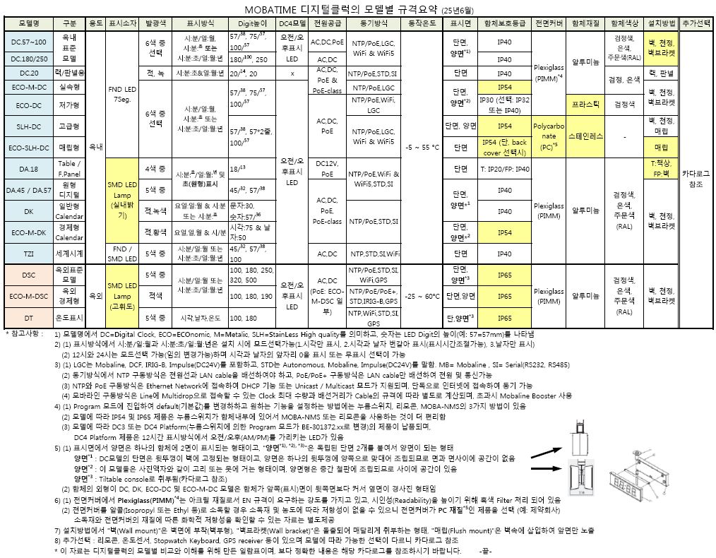 (모델별 규격요약표) |